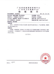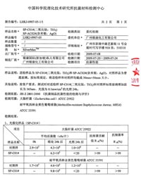 廣東省產(chǎn)品質(zhì)量監(jiān)督檢驗中心-銀康二氧化鈦殺菌檢測報告 檢測表明:金色葡萄球菌的殺菌率在24小時內(nèi)高達(dá)99.74% 大腸埃希氏菌的殺菌率在24小時內(nèi)高達(dá)99.60% |