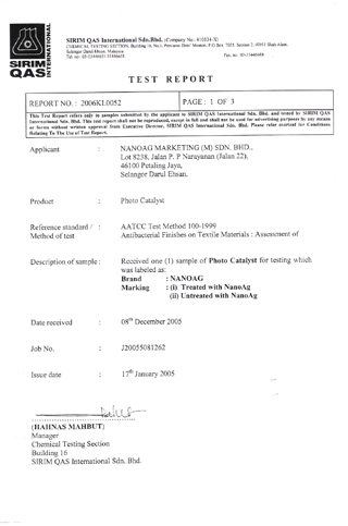 馬來(lái)西亞SIRIM-銀康二氧化鈦的檢測(cè)報(bào)告
