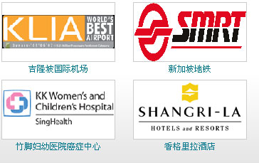 服務(wù)過(guò)的客戶有廣州香格里拉大酒店、云頂?shù)谝皇澜绱缶频辍⒓∑聡?guó)際機(jī)場(chǎng)、馬來(lái)西亞雙威酒店、新加坡地鐵、東方文華大酒店等等知名客戶。