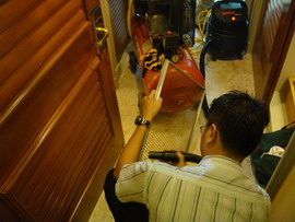 銀康處理前先測量風(fēng)速 拆下清洗過濾網(wǎng)的柵格
