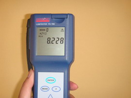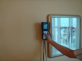 銀康處理前測得表層的細(xì)菌數(shù)為8,228RLU 檢測墻壁表層細(xì)菌數(shù)