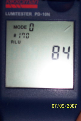 經(jīng)過銀康處理后的客房 處理后檢測的表面細菌數(shù)為84RLU
