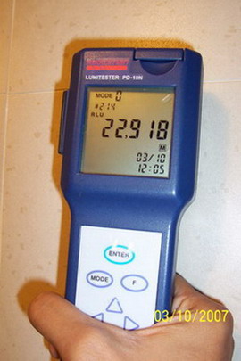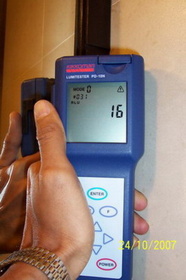 處理前表面細(xì)菌數(shù)采樣 處理前測(cè)得表面細(xì)菌數(shù)為22918RLU