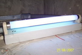 裝上UV等來(lái)啟動(dòng)光觸媒工作 工程人員正在表面噴涂銀康光觸媒和納米銀