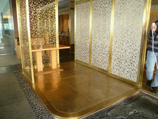 施工地點:香格里拉酒店三樓灘萬餐廳大廳及包房銅地板區(qū)域