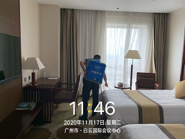 2020年11月16日-18日,銀康對(duì)廣州白云國(guó)際會(huì)議中心-水務(wù)論壇活動(dòng)現(xiàn)場(chǎng):酒店客房、水務(wù)論壇珠江廳、東方廳、分會(huì)場(chǎng)以及餐飲包廂進(jìn)行防疫消毒服務(wù)。以下是進(jìn)行消毒服務(wù)的相關(guān)圖片: 酒店客房消毒: 珠江廳消毒: 東方廳消毒: 分會(huì)場(chǎng)消毒: 餐飲包廂消毒: