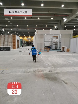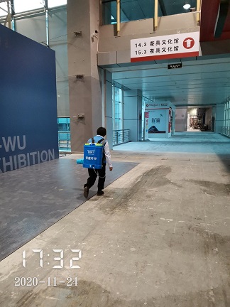 2020年11月23日-30日,銀康進(jìn)行琶洲國(guó)際會(huì)展中心C區(qū)-茶博會(huì)防疫消毒服務(wù)。以下是進(jìn)行消毒服務(wù)的相關(guān)圖片: