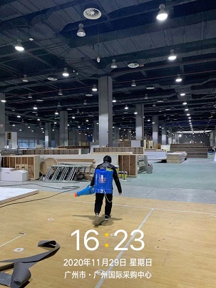 2020年11月29日至12月7日,銀康進(jìn)行廣州國(guó)際采購(gòu)中心展館-廣州設(shè)計(jì)周展會(huì)保潔及防疫消毒服務(wù)。 設(shè)計(jì)周開展期間: 空調(diào)機(jī)房消毒服務(wù): 展內(nèi)消毒服務(wù):