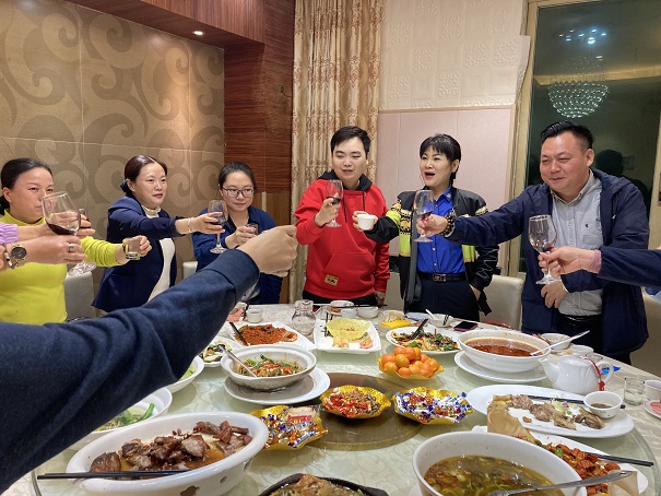 參加銀康年夜晚宴的有總經(jīng)理馬鵬程、項目總監(jiān)馬捷、項目經(jīng)理何丹鳳、行政經(jīng)理郭虹、行政文秘羅麗嫻、行政助理黃裕、行政助理梁嘉誼以及各項目主管和領班。年夜飯現(xiàn)場氣氛熱鬧又輕松,這次晚宴不僅僅是嗅覺和味覺的盛宴,更是精神和視覺的盛宴。在這里,大家完全沒有了上級與下屬之分,沒有了長輩和晚輩之分,更沒有了項目和項目之分,有的只是其樂融融合“家”歡!