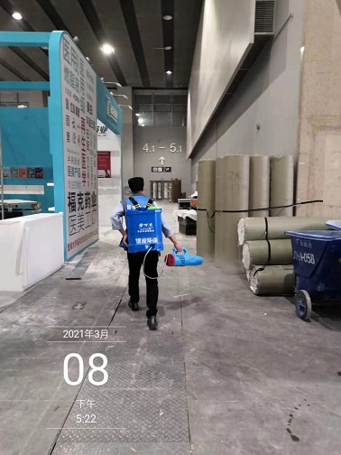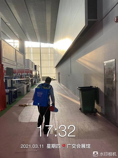2021年3月7-12日,銀康公司承包琶洲國際會展中心A、B、C區(qū)共28個館-廣州國際美博會防疫消毒服務(wù)。以下是進(jìn)行防疫消毒服務(wù)的相關(guān)圖片: