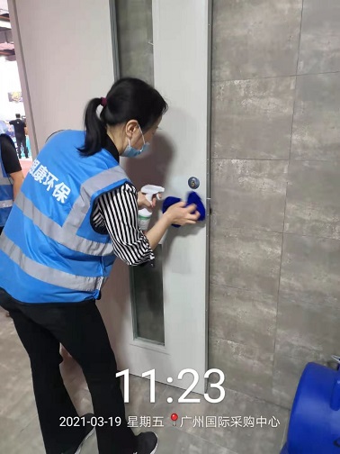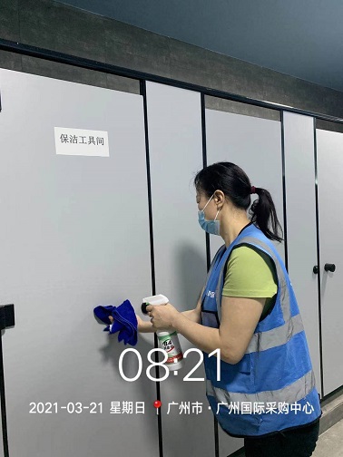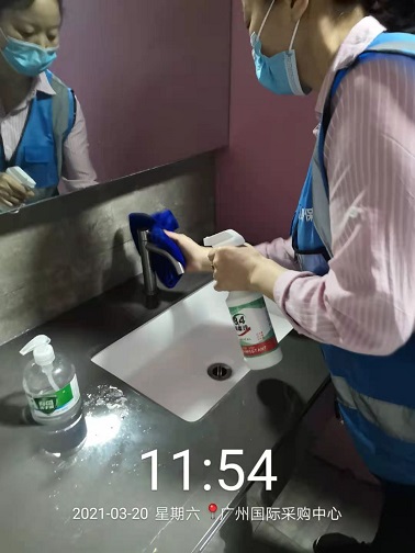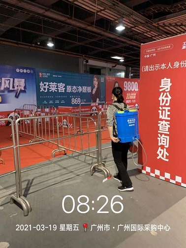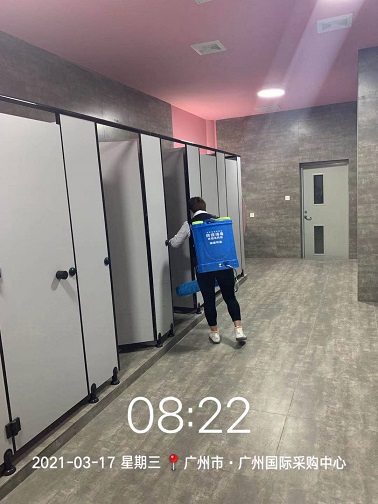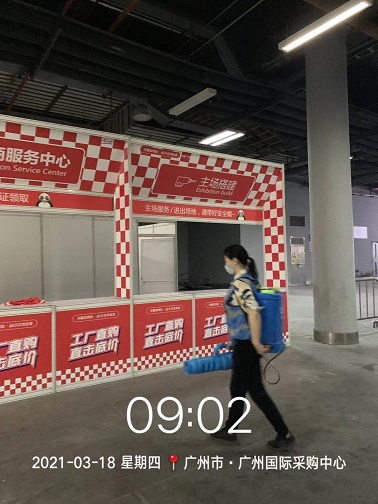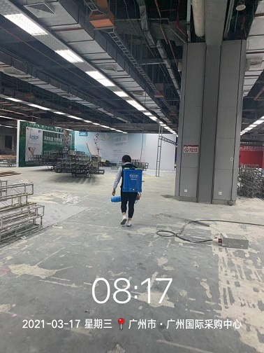 2021年3月16-21日,銀康公司承辦廣州國際采購中心展館-華夏家博會保潔及防疫消毒服務,以下是進行保潔及防疫消毒服務的相關(guān)圖片: