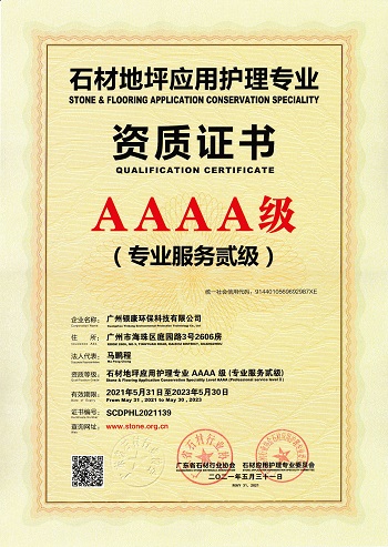 石材地坪應用護理專業(yè)AAAA級資質(zhì)證書