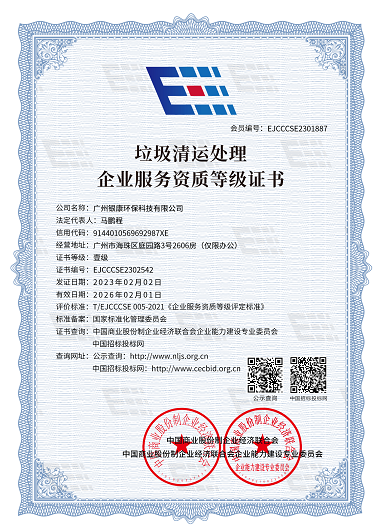 垃圾清運(yùn)處理企業(yè)服務(wù)資質(zhì)等級(jí)證書(shū)