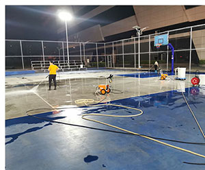 4)墻磚和地面:用涂水器將配好的全能清洗劑溶液涂抹墻磚和地面,稍后片刻用云石鏟刀、清潔球、刮水器將地面清洗干凈,最后用吸塵吸水器收尾;